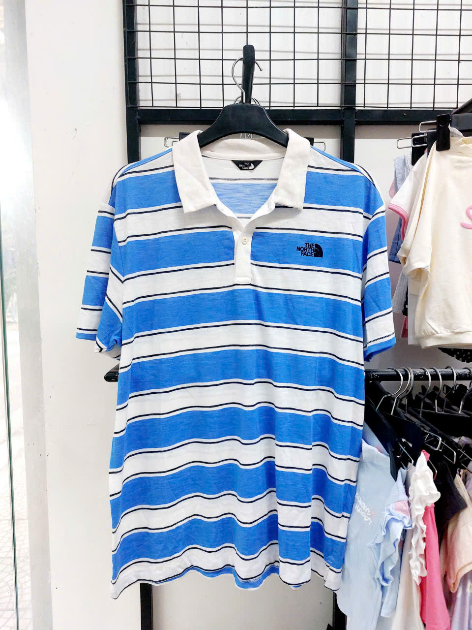 Áo cotton xước kẻ có cổ The North nam xuất xịn. HA2784