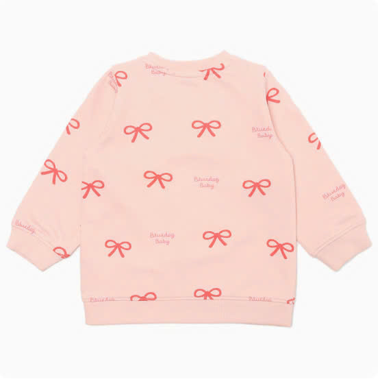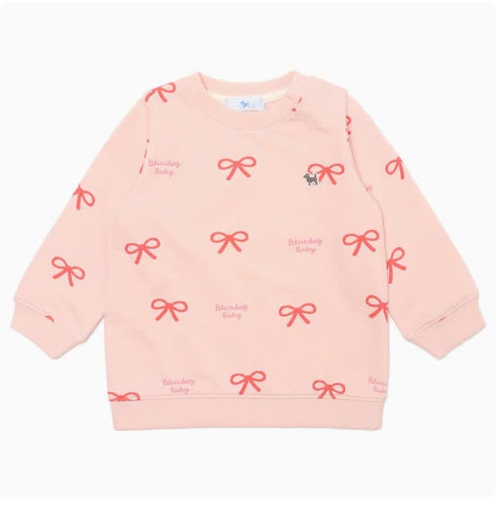 Áo chất liệu nỉ da cá mềm thân thiện với da bé. Áo họa tiết nơ ruy băng đáng yêu trên nền hồng nịnh da lắm ạ. Áo bo gấu form cơ bản dễ phối đồ, bé diện đi học đi chơi đều rất tiện.