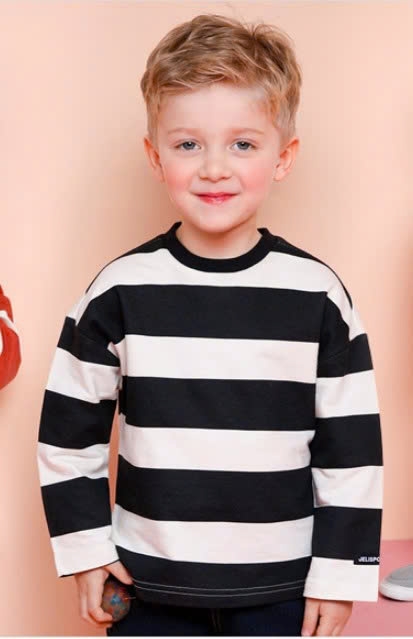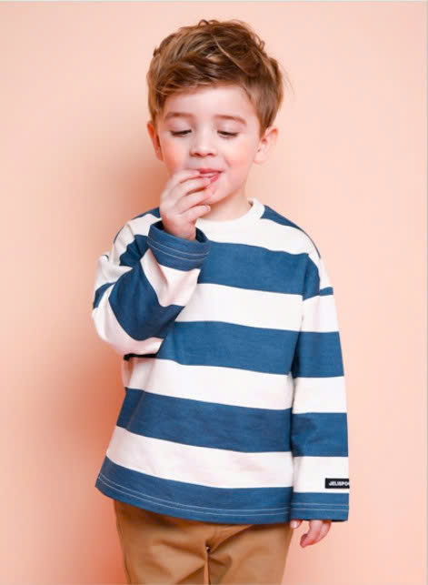 Áo nỉ da cá kẻ gấu xẻ bé trai Jelis. HA2605