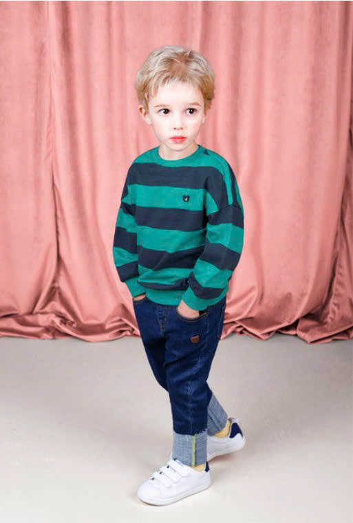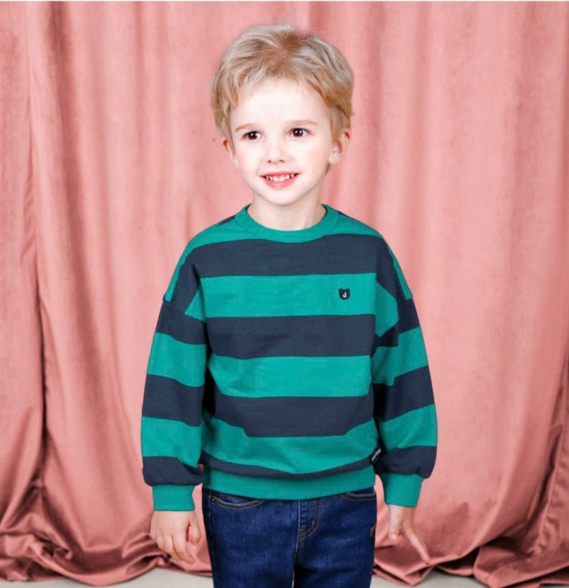Áo nỉ da cá kẻ logo gấu ngực bé trai Jelis. HA2606