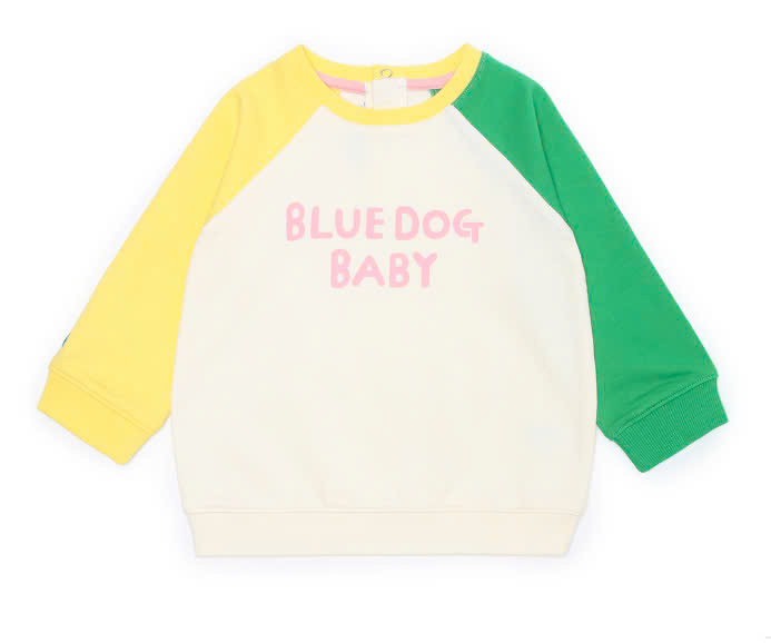Áo nỉ da cá tay raglan 2 màu bé trai bé gái Cún xanh baby. HA4494