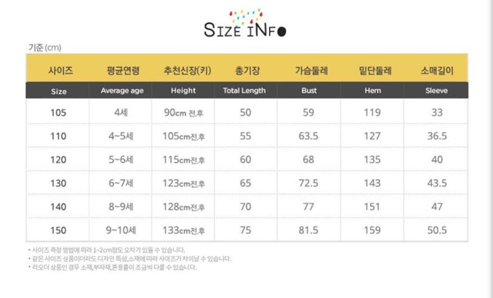 Size: 105 | 110 | 120 | 130 | 140 | 150 (tuỳ màu)