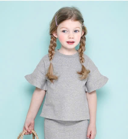 Áo chất liệu 100% cotton, vải dệt kiểu da cá đứng form dày dặn. Áo thiết dáng ngắn với thiết kế thay bèo điệu đà rất dễ mix đồ. Mẹ chọn cho bé mặc cùng chân váy hay quần short cá tính đều rất tiện.
