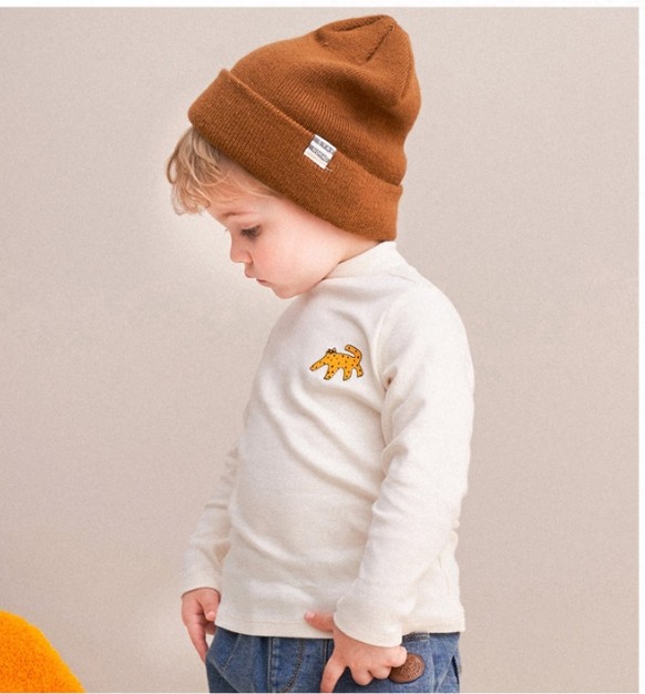 Áo thun cổ 3 phân logo báo vàng bé trai bé gái Moli. HA4641