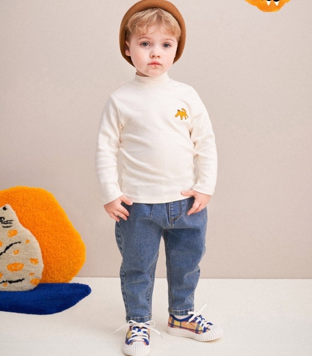 Áo chất liệu thun mềm thân thiện với da bé, giữ ấm tốt. Áo thiết kế cổ 3 phân cùng dáng áo rộng ngang cá tính. Điểm nhấn logo báo vàng ngực dễ thương.