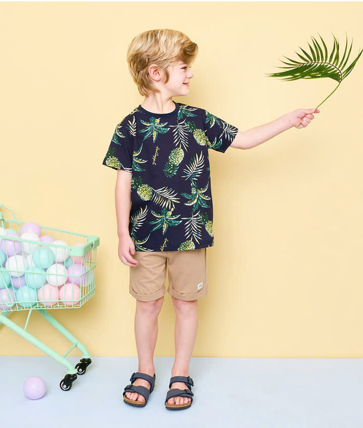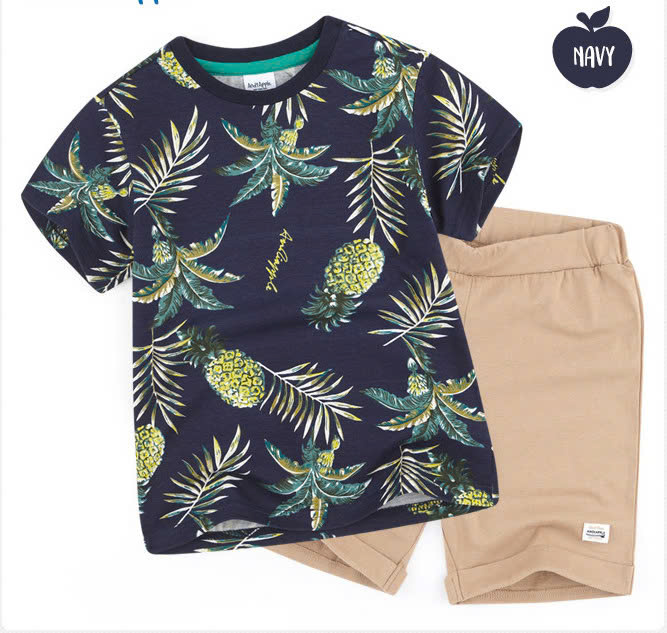 Bộ cotton áo họa tiết lá dừa bé trai Andi. HA3366