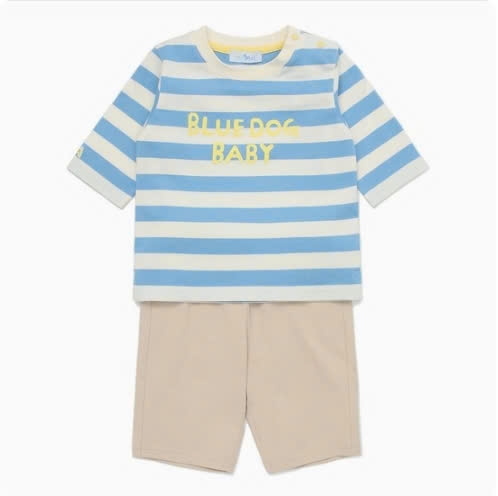 Bộ cotton kẻ lửng bé trai Cún xanh baby. HA2068