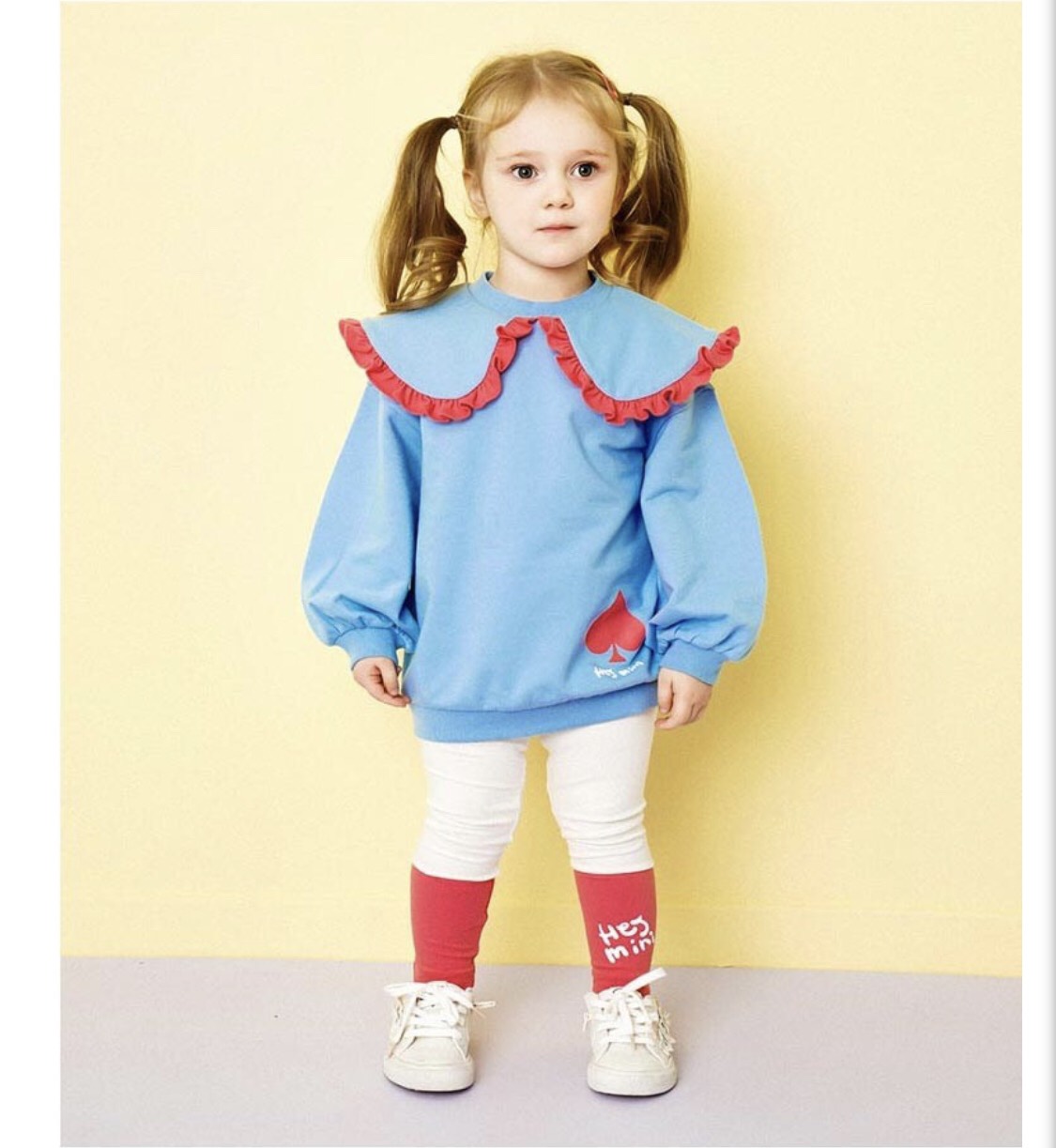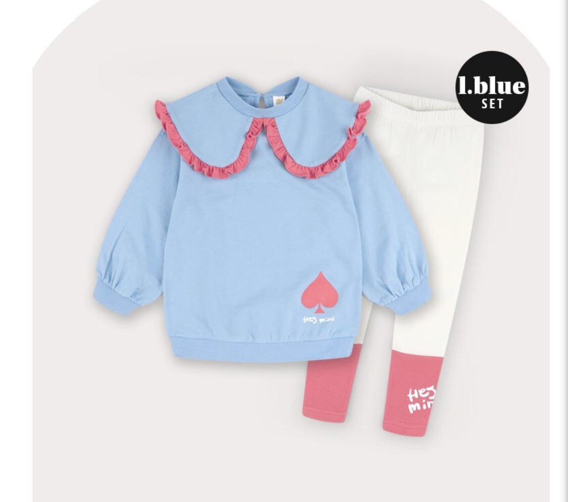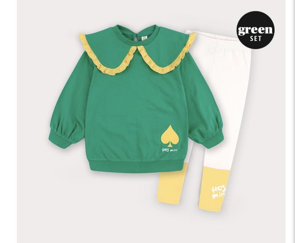 Bộ nỉ da cá bé gái áo cổ sen lé bèo Hej. HA2545
