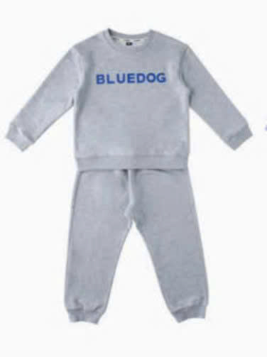 Bộ nỉ da cá in chữ bé trai bé gái Cún xanh. HA4251