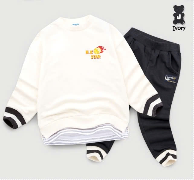 Bộ nỉ da cá logo ngực NKstar phối gấu bé trai Jelis. HA4671