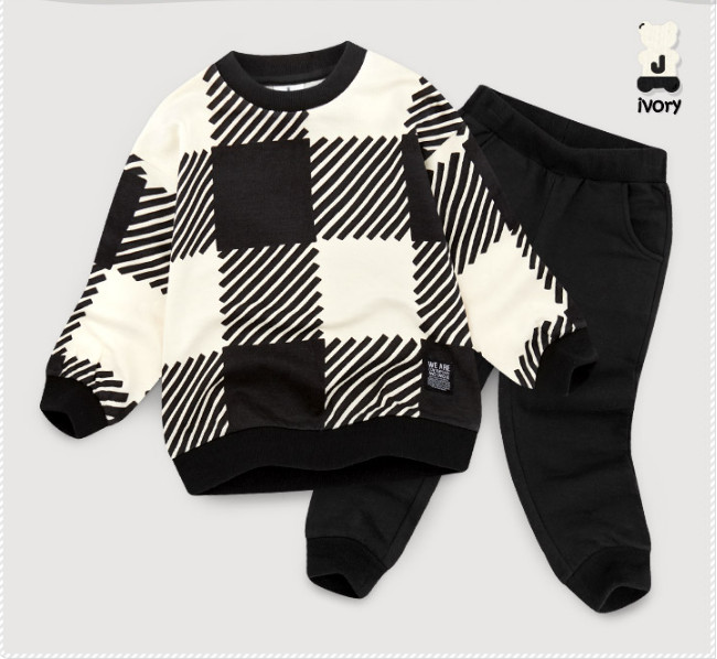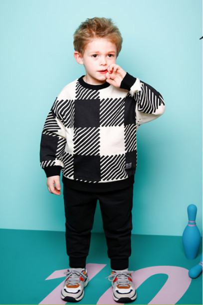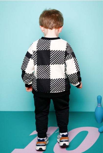 Bộ nỉ da cá ô vuông đen trắng bé trai Jelis. HA4638