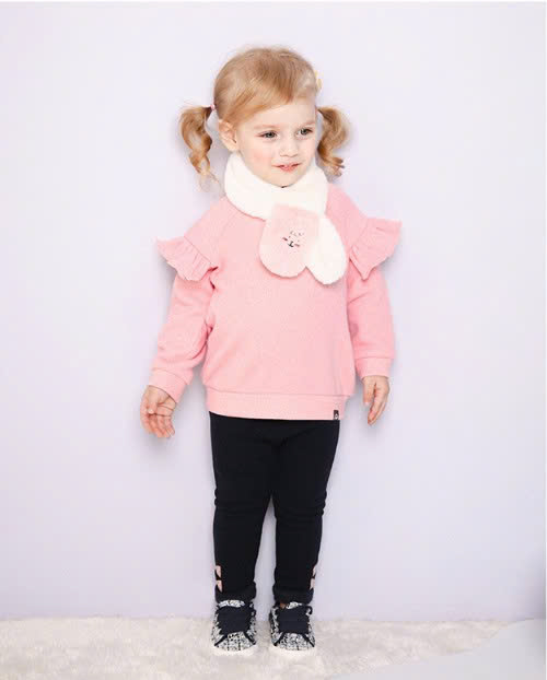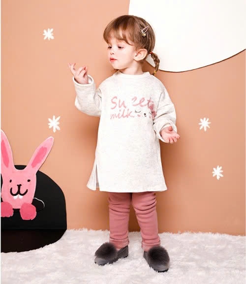Quần chất liệu nỉ lót lông mềm giữ ấm siêu tốt mà không hề bí bít các mẹ nhé. Form leg ôm sát chân mix với áo váy điệu đà. Nơ in gấu quần cùng gập gấu cá tính.