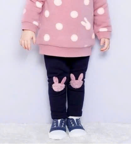 Quần chất liệu nỉ lót lông mềm giữ ấm siêu tốt mà không bí bít. Dáng quần leg ôm sát gọn chân nhưng co giãn nhiều bé thoải mái hoạt động. Thiết kế phối gối mặt thỏ lông ngộ nghĩnh.