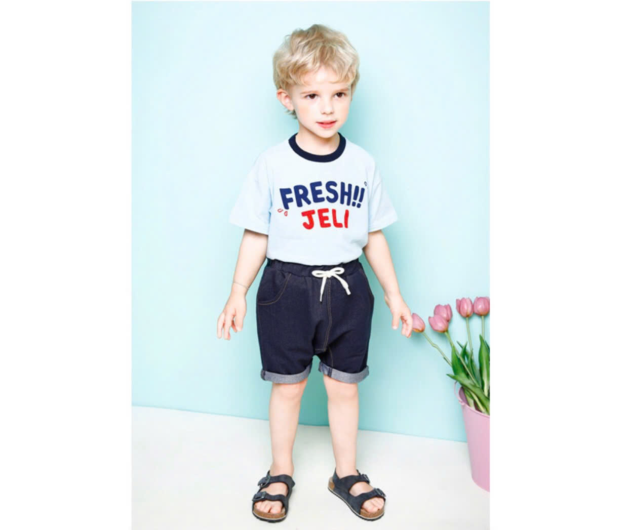 Quần short cotton giả bò Fresh bé trai Jelis. HA1981